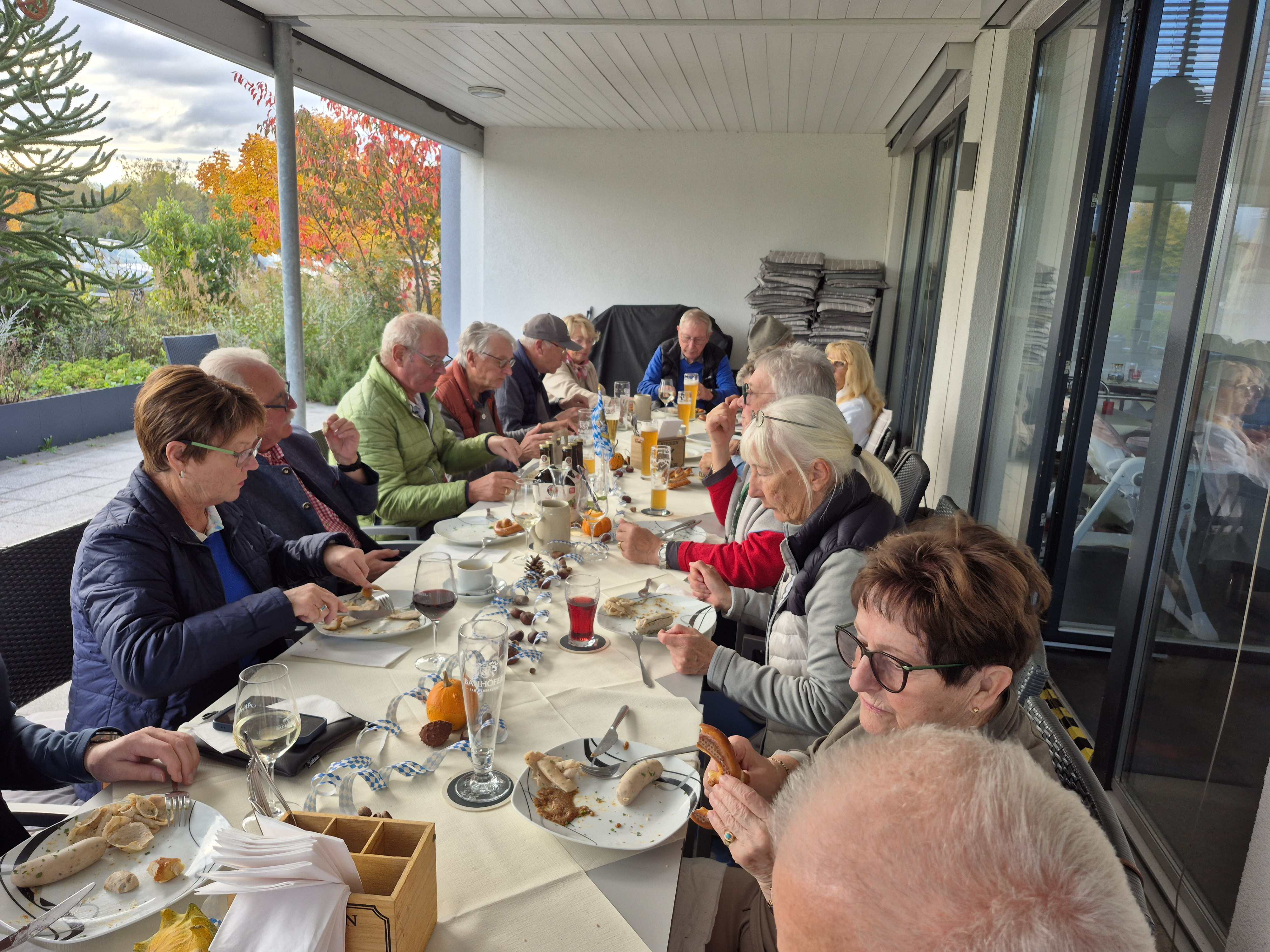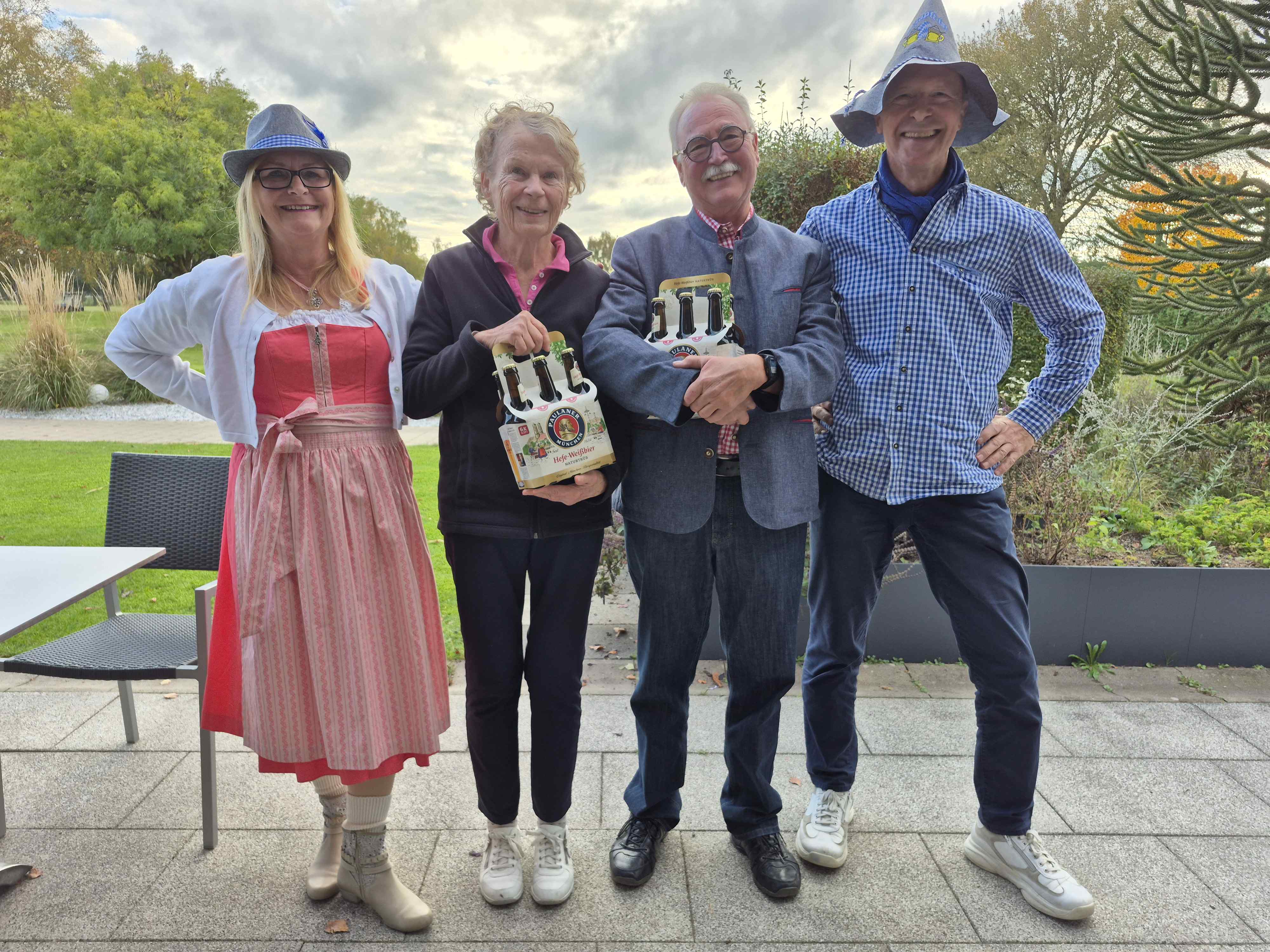Bei schönstem Wetter haben die Seniorinnen und Senioren am Donnerstag, 16. Oktober 2025 ihr Oktoberfest gefeiert. Die Teilnahme war enorm und es hat viel Spaß gemacht. Auf der Runde dann die spannenden Fragen: Wer von den Männern ist am nächsten am Seppelhut Bahn 5 und am nächsten am Weißbier Bahn 11. Sieger Bahn 5 war Michael Drönner mit 6,50 m am Seppelhut. Dafür bekam er einen schönen Seppelhut. An Bahn 9 lag Reinhard Vogel mit 12,90 m am nächsten zum Weißbier. Das schaffte an Bahn 9 Rotraut Jordan mit 3,80 m. Für diese Gewinner gab es natürlich einen Träger Weißbier. Am nächsten am Seppelhut an Bahn 14 lag der Ball von Sylvia Graf-Bäsch mit 4,60 m.