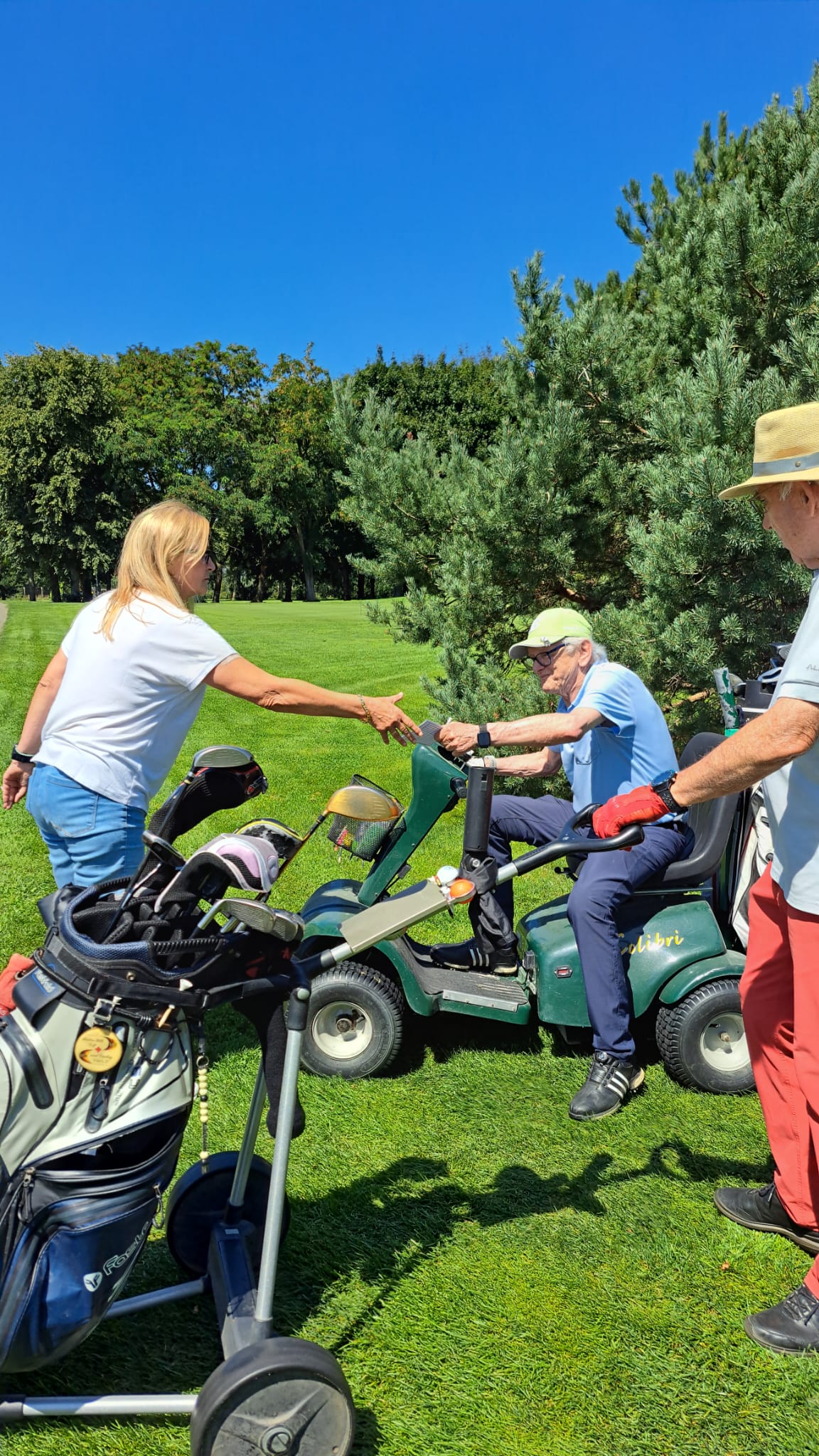 Nach der tollen Golfrunde mussten wir noch das Loch 19 schafften. Hier hat Leo mit seinem Team uns Weißwürste und Brezeln serviert, die gerne gegessen wurden.